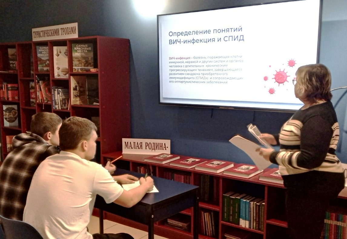 В Радищевской сельской библиотеке прошла беседа-диалог Мифы и правда о СПИДе, где библиотекарь рассказала об истории дня и значении