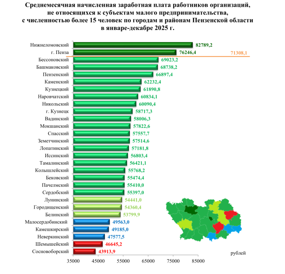 Заработная плата работающих в организациях Пензенской области в декабре 2025 г